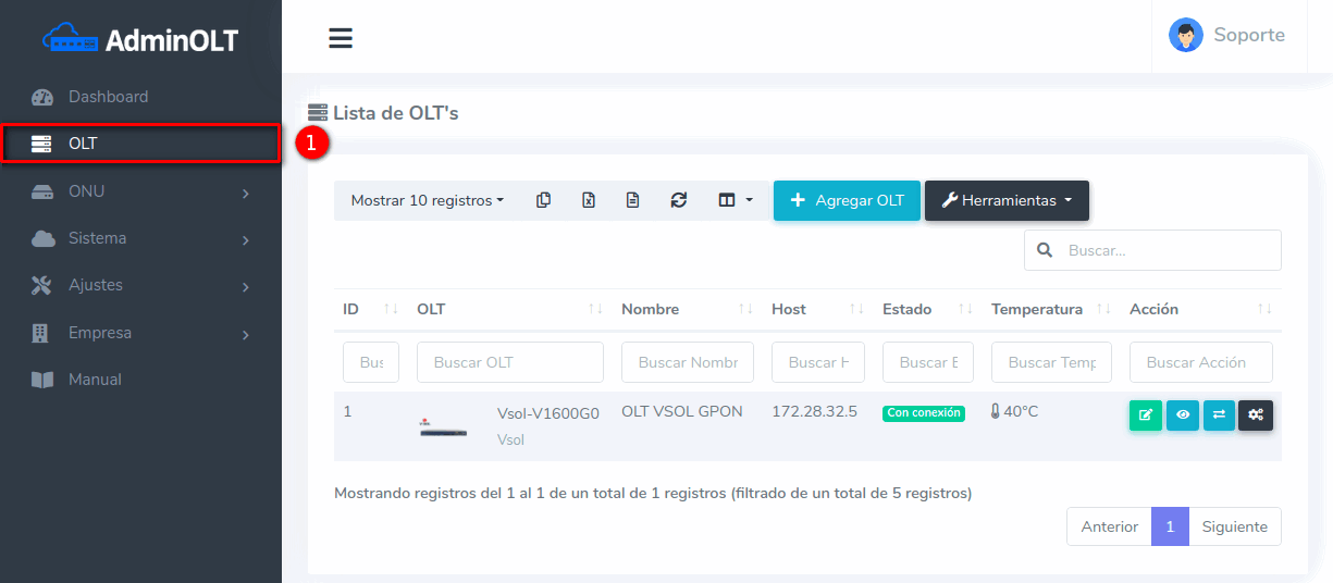 1 Ir a Lista de OLT