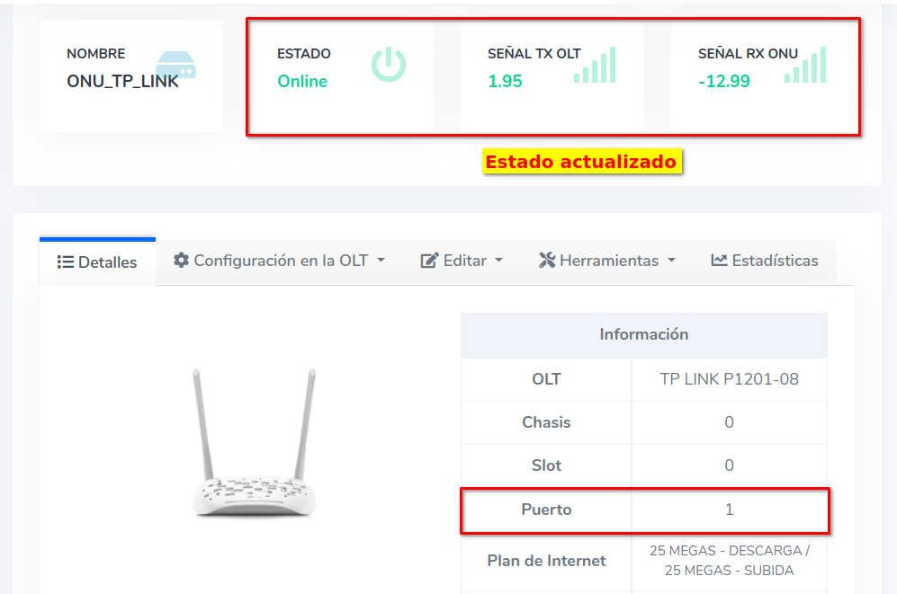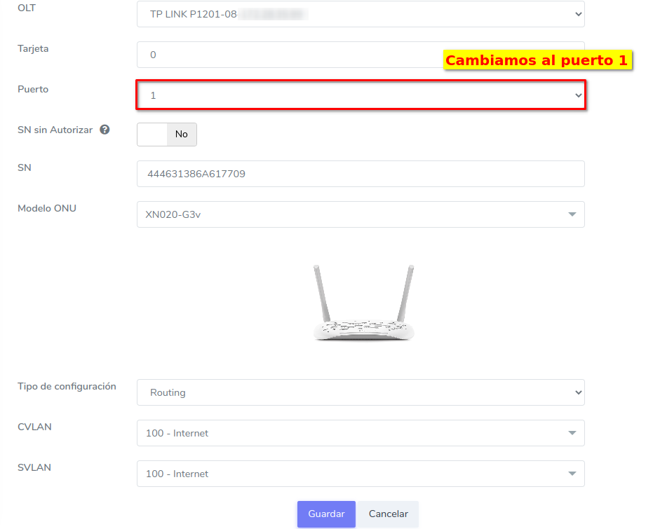 Tome en cuenta que el puerto PON de la OLT debe tener deshabilitados los modos Auto y Adaptive. Si tiene dudas sobre este tema puede consultar el siguiente manual; Configurar Puerto PON