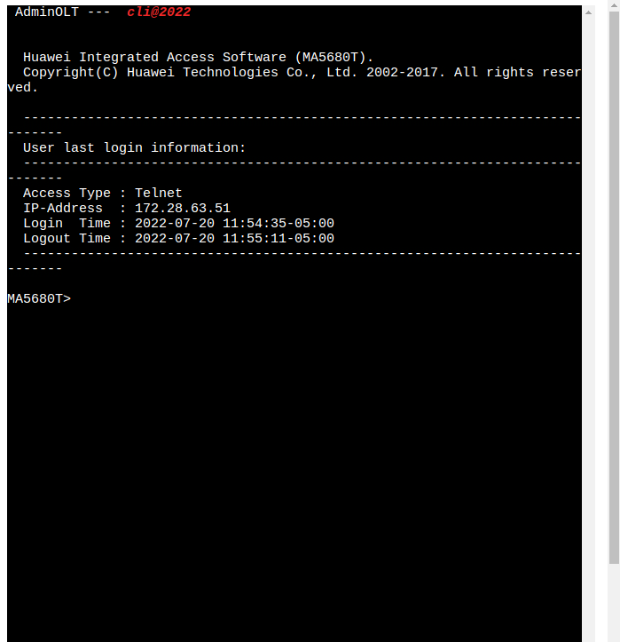 Si todo esta correcto, entonces se abrira la terminal de la OLT