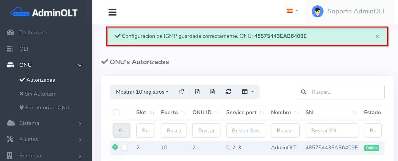 2Configuramos la información para guardar la información IGMP que la ONU
