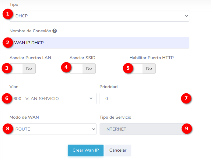 - ¿Cómo crear una configuración WAN IP de tipo DHCP?