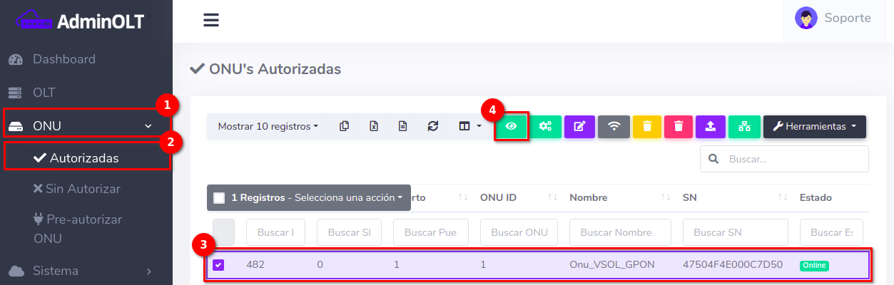 Al hacer esto, la configuración se borrara de la ONU y del sistema AdminOLT.