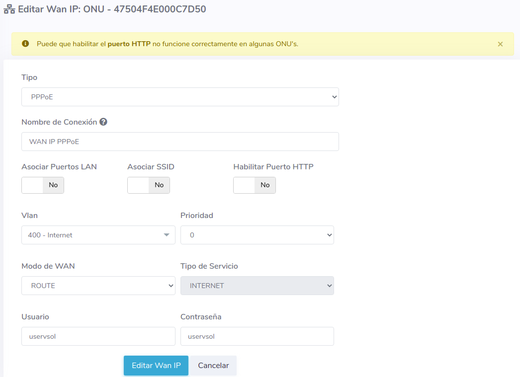 Pasos para crear Wan IP desde Onu's autorizadas.