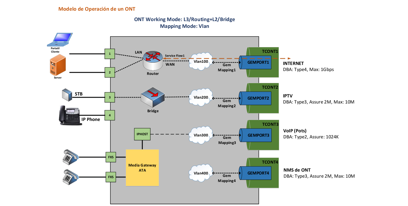 - Tipo 2: Ancho de banda asegurado (utilizado para servicios de video).