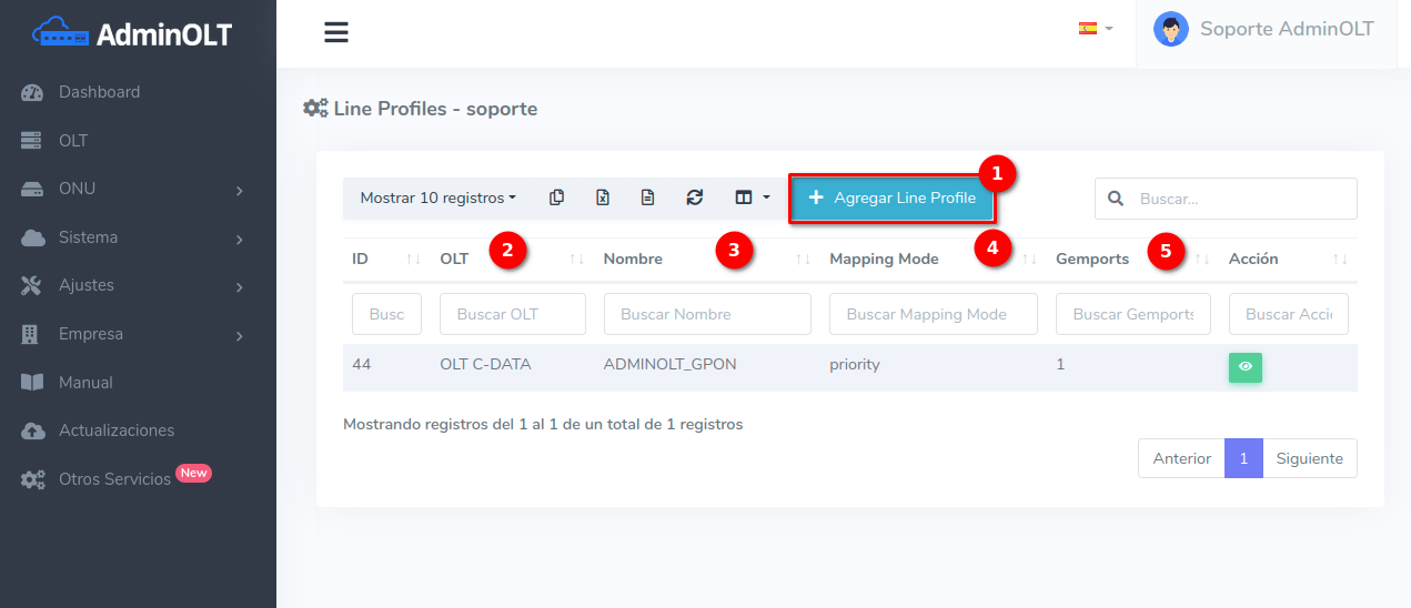 AdminOLT ha integrado una característica para crear configuraciones avanzadas de perfiles de línea, para que los usuarios puedan autorizar sus onus utilizando configuraciones personalizadas y no de la manera predeterminada realizada por AdminOLT.