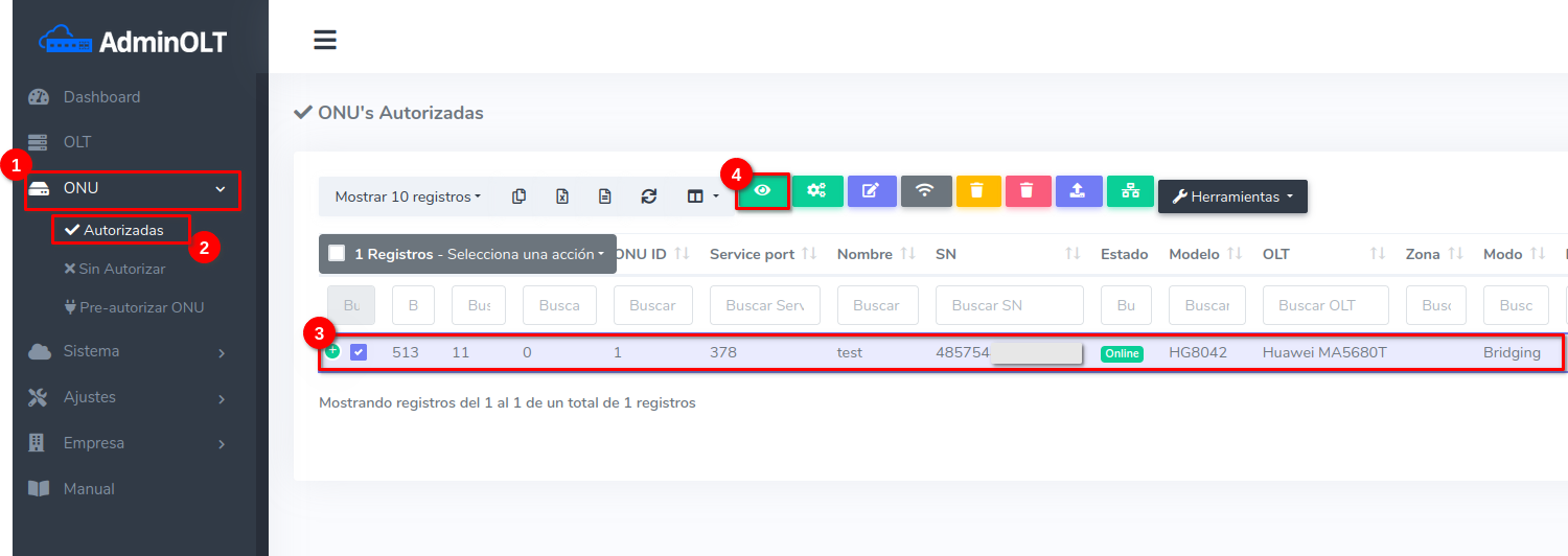 1Dirijase a la sección de ONU > Autorizadas > Ver Detalles