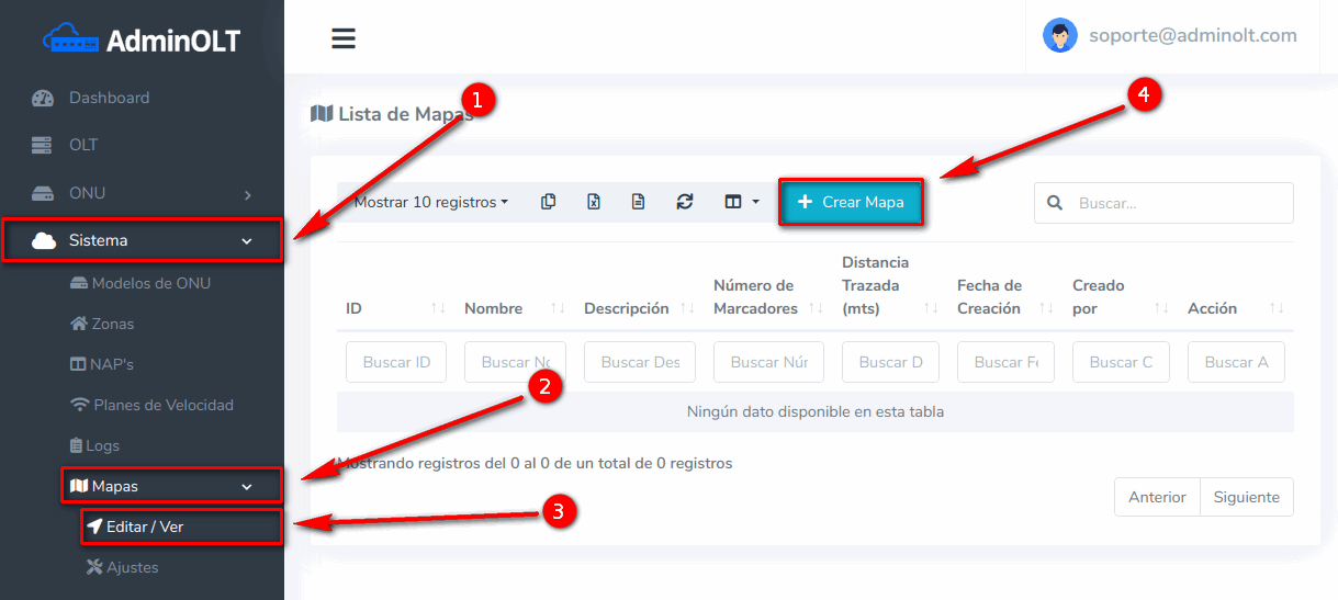 Pasos para crear un mapa en AdminOLT