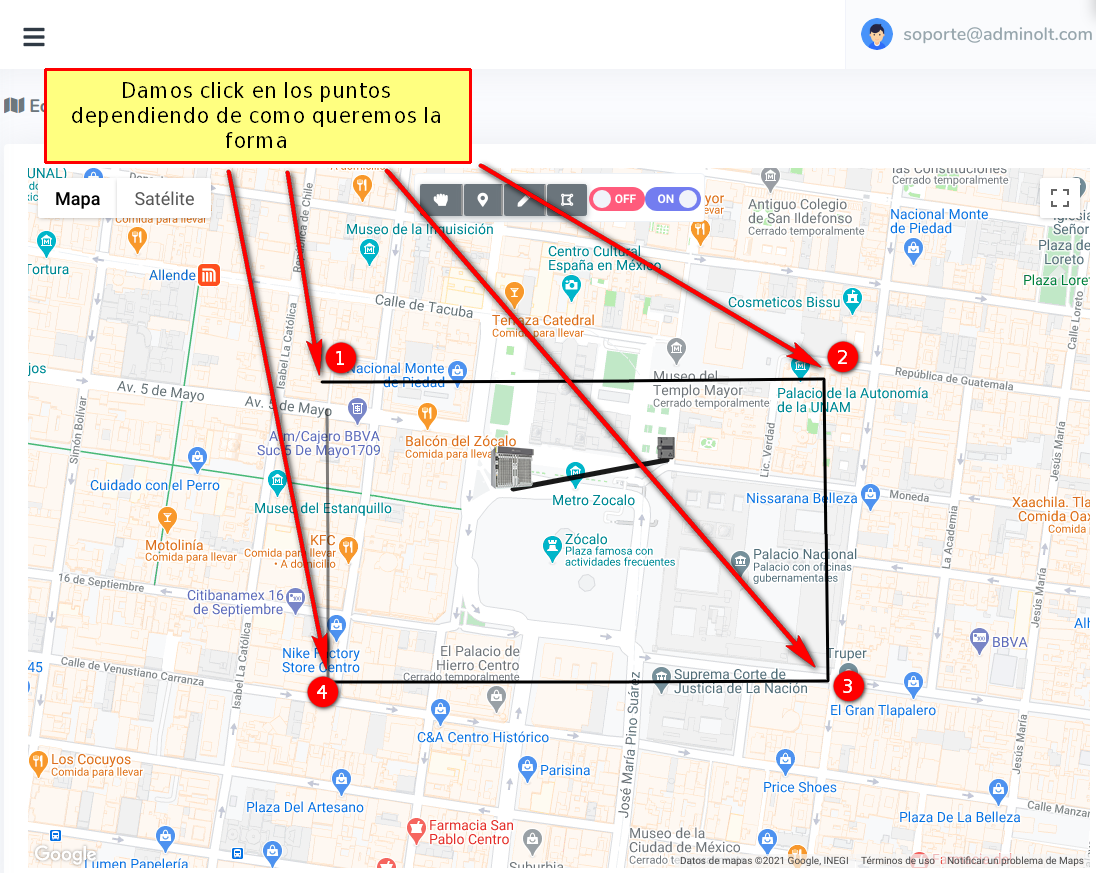 Damos click en la opción Manipular Mapa para terminar de dibujar la forma.