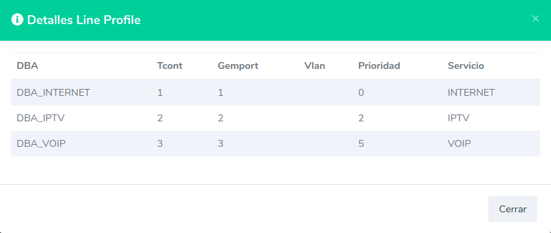 Es necesario que ingresemos a nuestra OLT y creamos los DBA que utilizaremos. Para este ejemplo, vamos a crear los siguientes DBA.